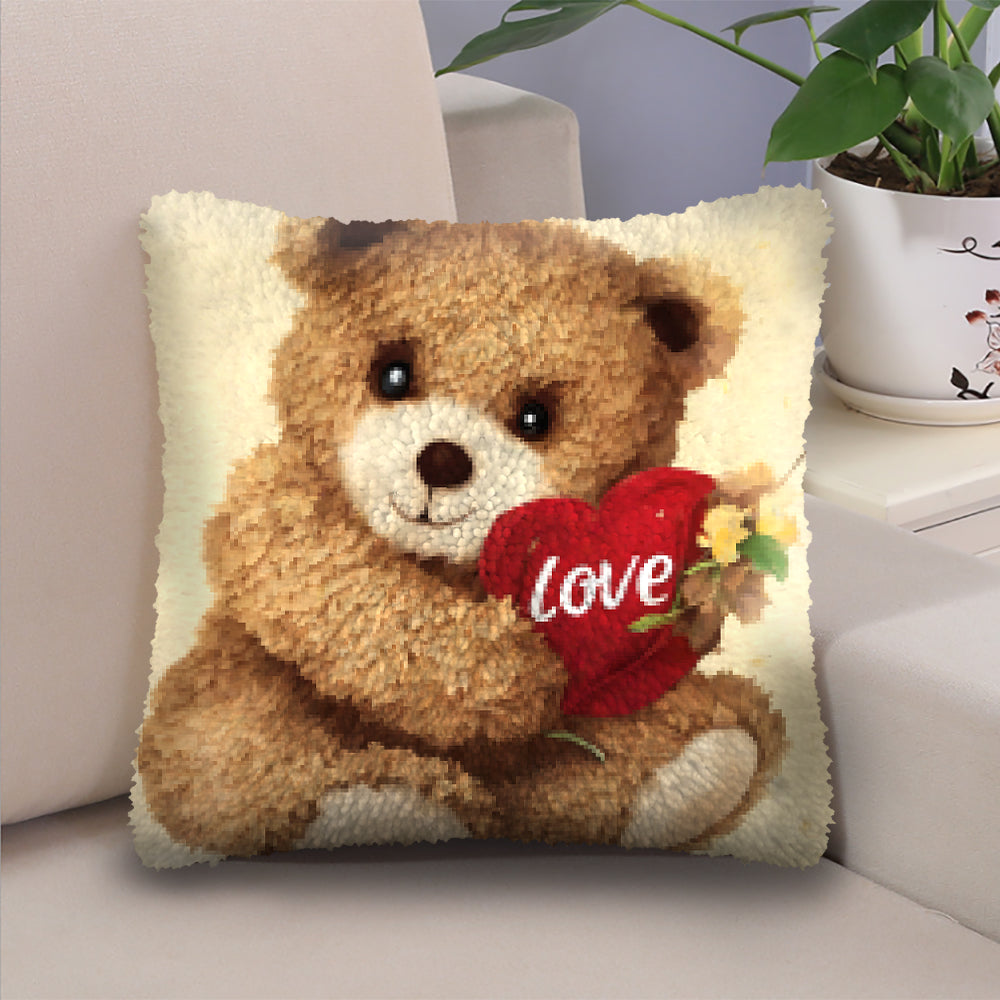 Teddy Bear with Love Heart Latch Hook Pillow Kit