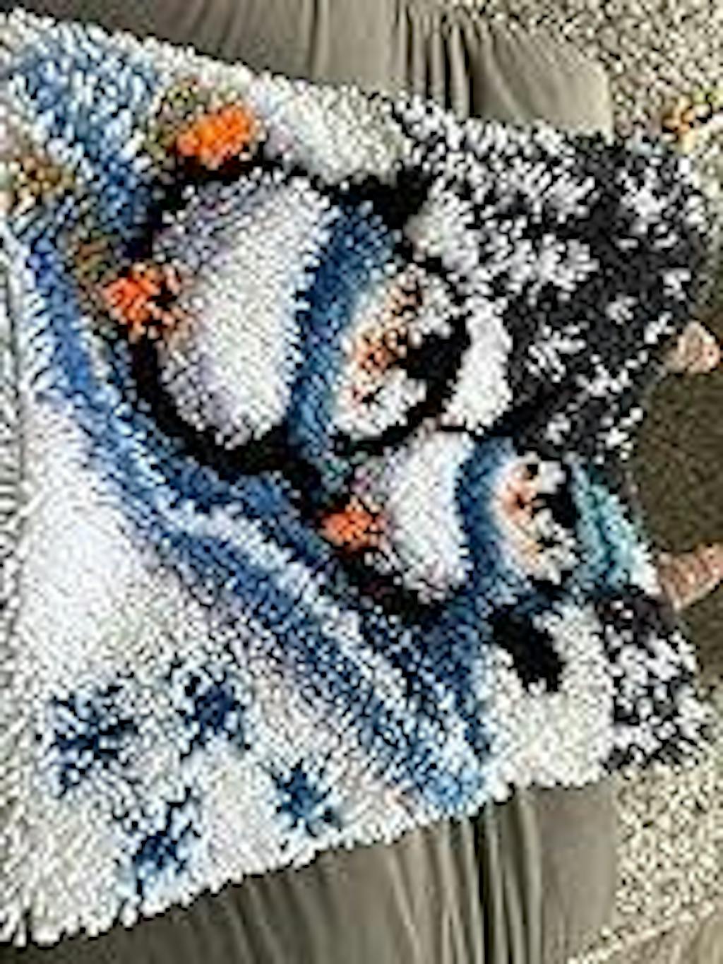 The map provided did not match the grid very well. It was every confusing because the spray paint on the grid was off and it made it difficult to match the map. The colors would bleed into each other making it hard to follow and decide which color to use. I was able to work around that but some of the square colors were off. I had a lot of yarn left so that was a relief I did not run out. It came out very pretty and soft. It has a lot of fuzzies so I used a lint remover. Cute project that kept me busy. This fits an average pillow but not the big ones. The grid was tough and held up well. This was fun if you can work around the miscount and adjusting the colors on the squares.