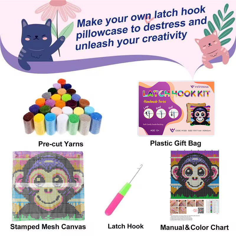 El kit de inicio incluye todo lo necesario para completar una funda de cojín de 17*17 pulgadas: