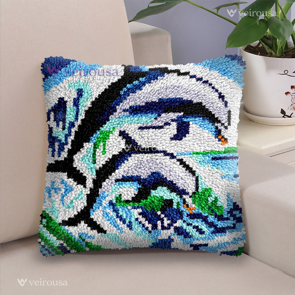 Dolphin Family Pillowcase Latch Hook Kit for Adult, Beginner and Kid