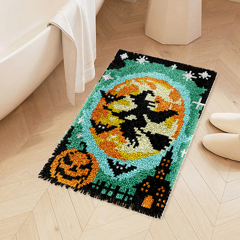 Halloween Night Flying Witch - Latch Hook Rug Kit