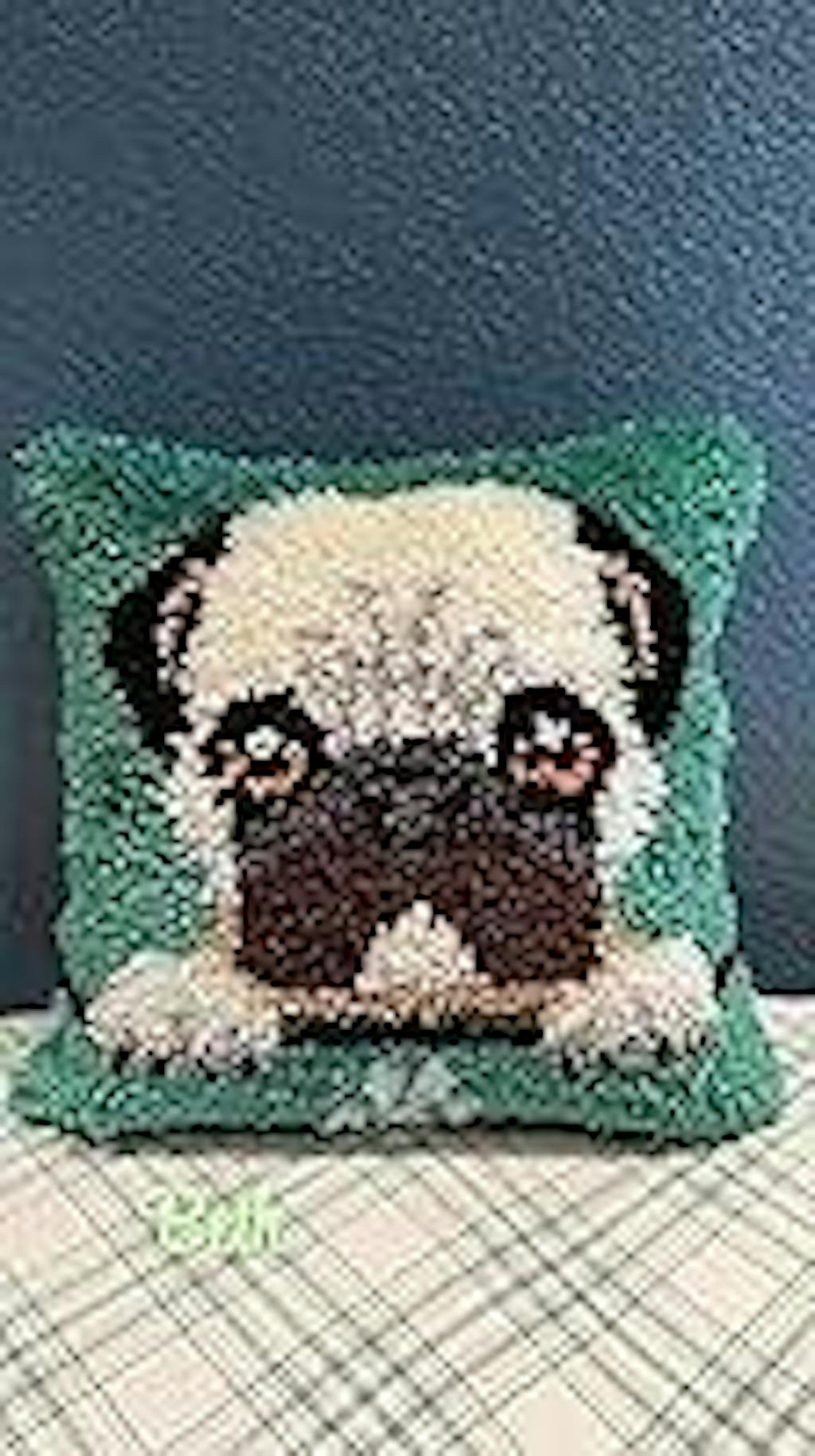 I am currently writing this project for my sister in law who LOVES pugs. The yarn colors are true to the picture, quality seems good (no raveling unless you mess up🙋♀️) The color code they provide is a good system, and I appreciate the line by line color graph (like a pattern) they provide bc, and this is the only drawback I have, the color coding on the mat isn’t quite accurate, so go by the accompanying paper pattern included. That’s perfect. All you need is in one heavy plastic, handled, container, so it’s easy to take along with you if you are a die hard crafter like I am! It was packed well. There are extra yarn pieces. The best part is, I don’t have to attach it to a pillow bc it’s already done! That was a happy surprise when I opened the box. I had not read that on the description. It’s a marvelously put together kit, and I know she’ll enjoy it as much as I’m enjoying doing it!