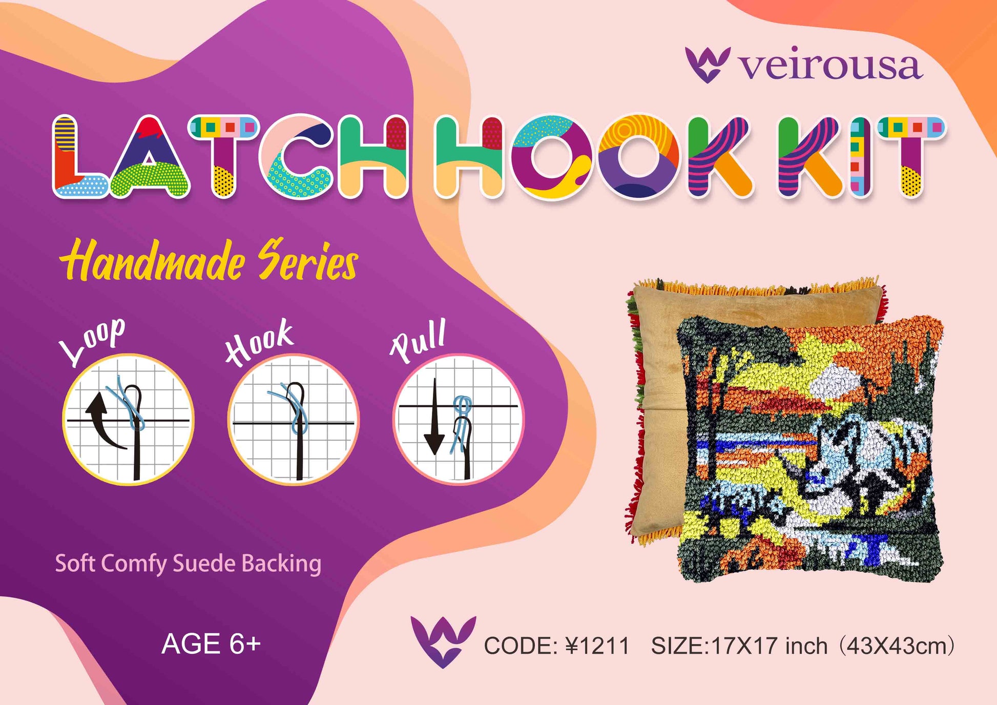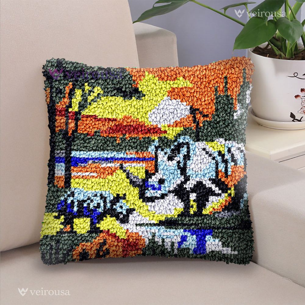 Two Rhinos Latch Hook Pillow Kit for Adult, Beginner and Kid