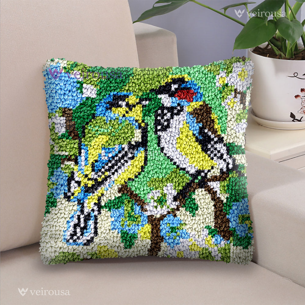 Two Blue Tits Latch Hook Pillow Kit for Adult, Beginner and Kid