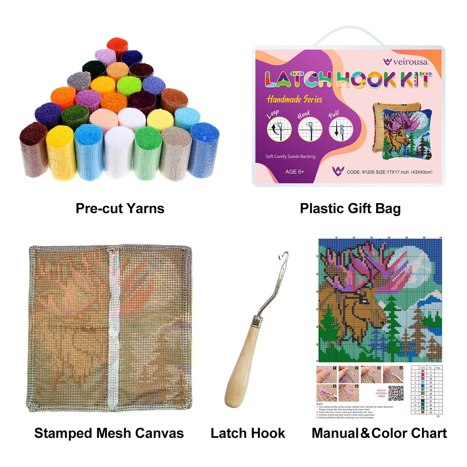 VEIROUSA Animals Latch Hook Pillow Kit for Adults, Beginners and Kids